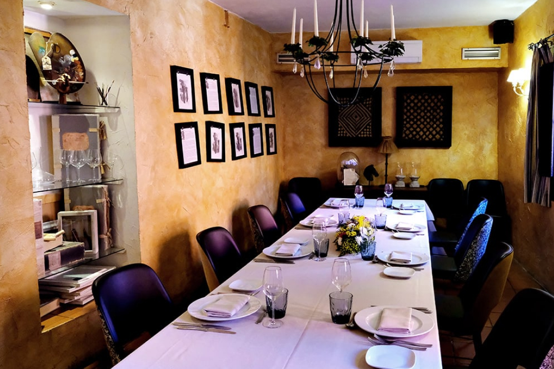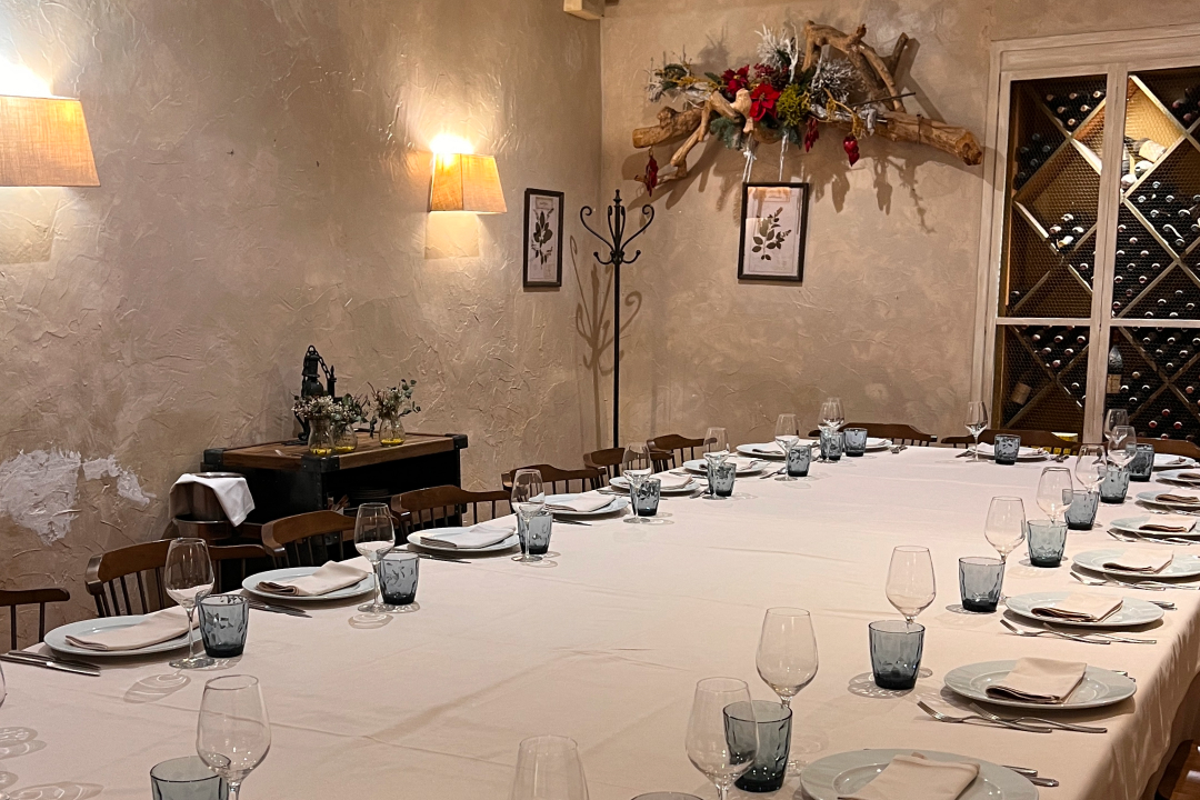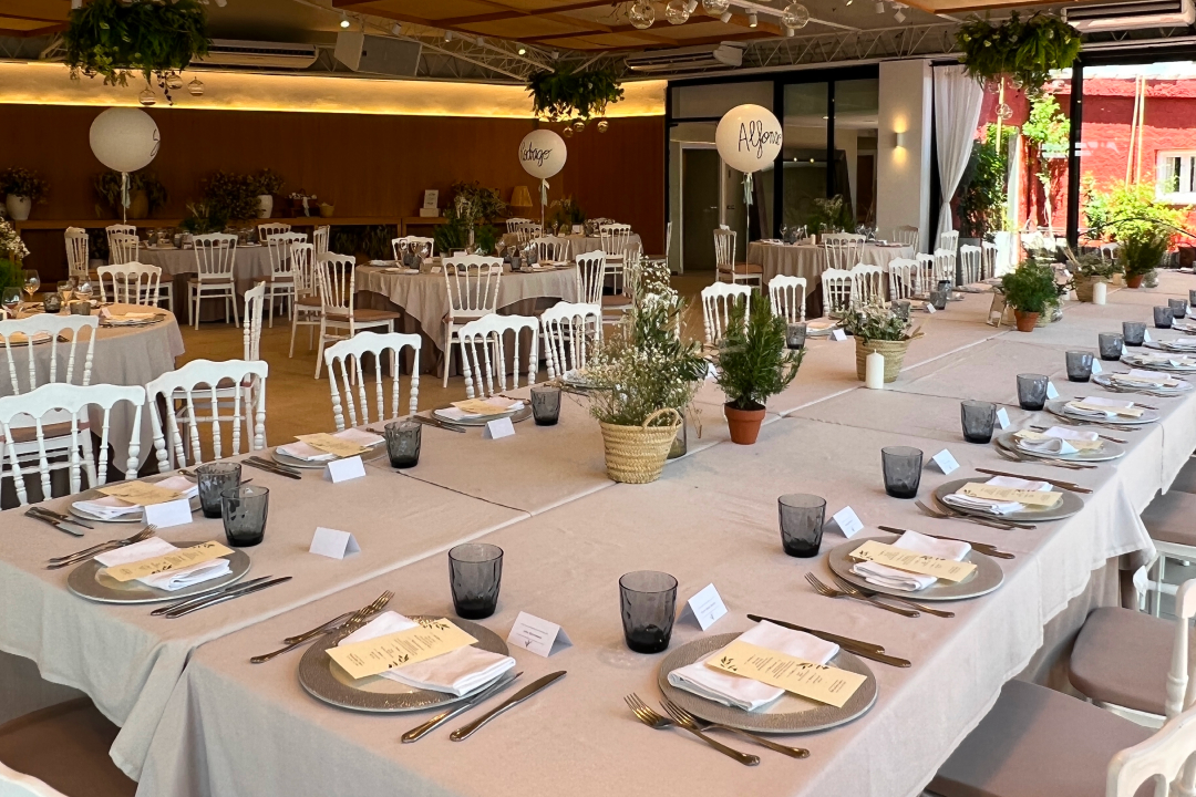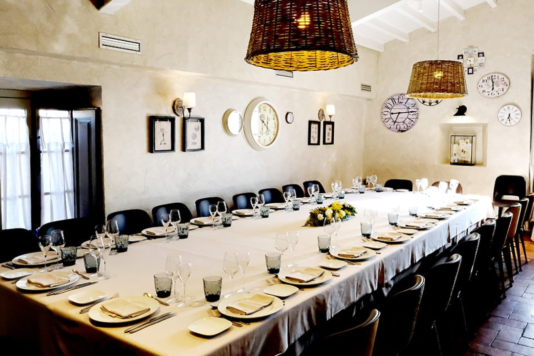 Situado en el primer piso de la Masía, tiene un encanto especial. Por su decoración, las celebraciones en este salón recuerdan las comidas familiares en el comedor de casa.